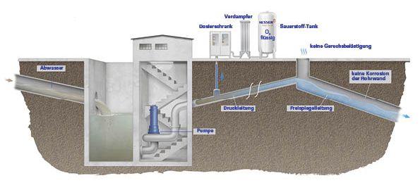 Durch das seit vielen Jahren in der Praxis bewährte Oxiduct-Verfahren werden Schwefelwasserstoffbildung und Korrosion in Kanalnetzen einfach und wirtschaftlich vermieden.
