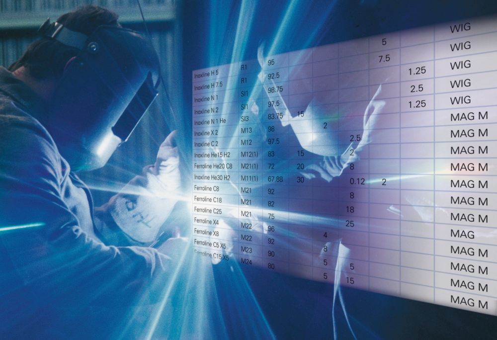 Die Palette der Schweissschutzgase folgt bei Messer einem klar gegliederten System, das sich an den zu verarbeitenden Grundwerkstoffen orientiert: