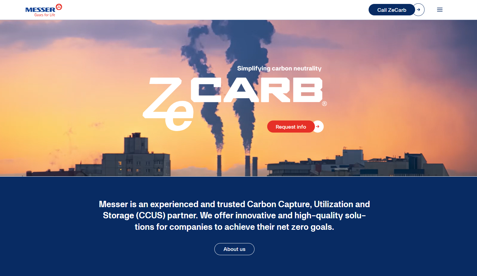 Společnost Messer poskytuje služby zachytávání CO₂ pro zákazníky v Evropě, USA a Asii pod názvem ZeCarb.